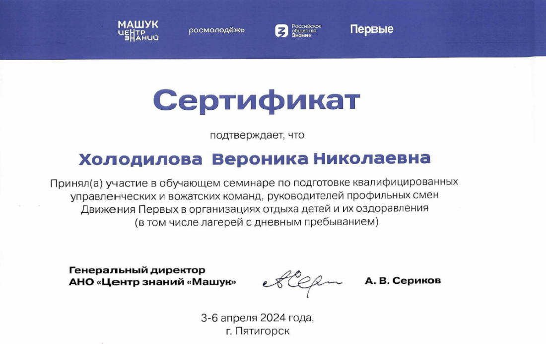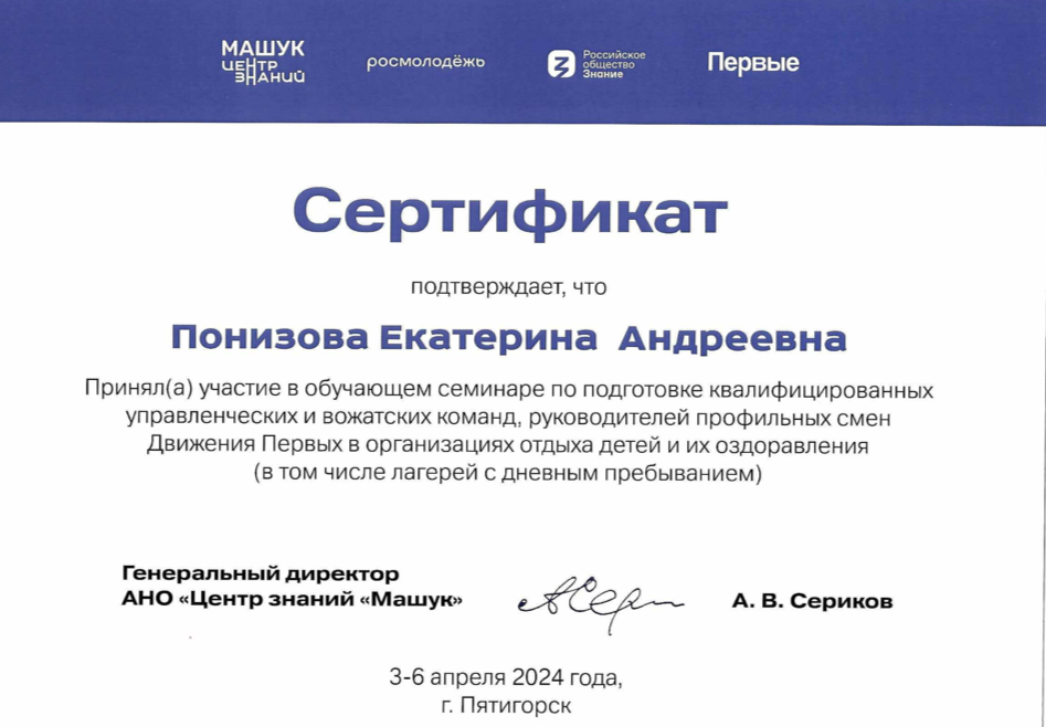 3.04.2024 – 06.04.2024г. прошел «Обучающий семинар по подготовке квалифицированных управленческих и вожатских команд, руководителей смен базовых лагерей Движения Первых» , от ООК "Саулык" приняли участие в семинаре: